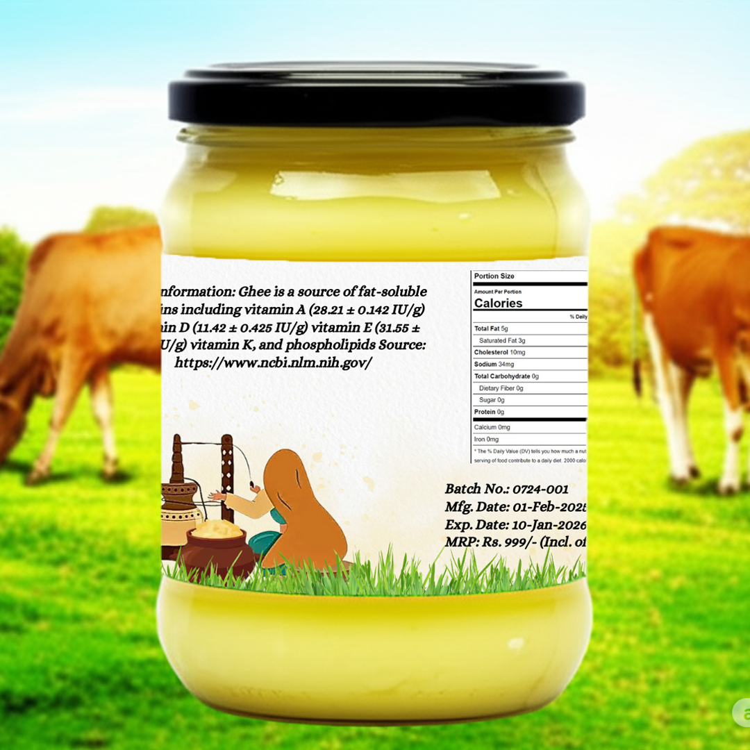 Experience the pure, traditional goodness of our Sahiwal A2 cow ghee. It is Desi Grass-Fed Cow Ghee. Crafted using the time-honored bilona method, this golden elixir is a testament to ancient Indian wisdom and modern nutritional science.