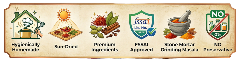Crafted in small batches using time-honored family recipes, our pickle captures the essence of authentic home cooking. We select only the finest red chilies, ensuring each one is bursting with flavor and the perfect level of heat.